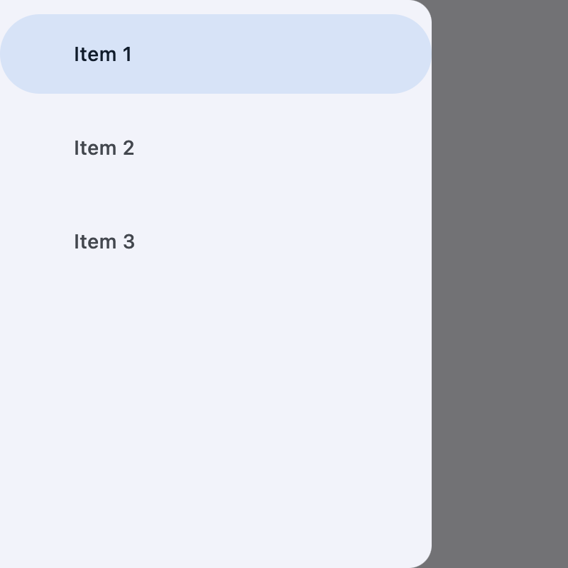The list contains NavigationDrawerDestination items and/or other controls such as headlines and dividers.